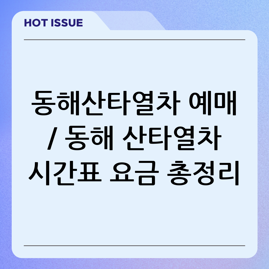 겨울 여행 계획 세우고 계신가요? 사랑하는 사람들과 특별한 추억을 만들고 싶다면 동해 산타열차를 강력 추천합니다! 동해안의 아름다운 겨울 풍경을 감상하며 낭만적인 기차 여행을 즐길 수 있는 기회, 놓치지 마세요. 이 글에서는 동해 산타열차 예매 방법부터 시간표, 요금, 그리고 꿀팁까지 모든 정보를 총정리하여 여러분의 완벽한 여행 계획을 돕겠습니다.