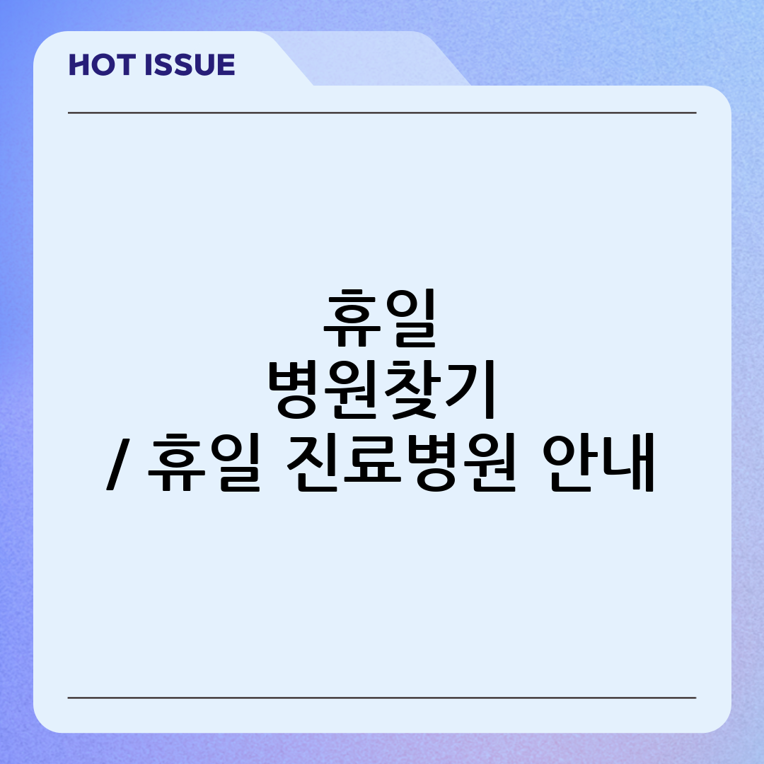 갑작스러운 몸의 이상, 주말이나 공휴일에 찾아오면 정말 난감하죠. 문 연 병원을 찾기도 어렵고, 응급실 가기는 망설여질 때, 어떻게 해야 할까요? 이럴 때를 대비해 휴일 병원찾기 방법을 미리 알아두면 당황하지 않고 적절한 의료 서비스를 받을 수 있습니다. 이 글에서는 휴일 진료병원 안내, 찾기 위한 다양한 방법과 유용한 정보들을 자세히 안내해 드릴게요.